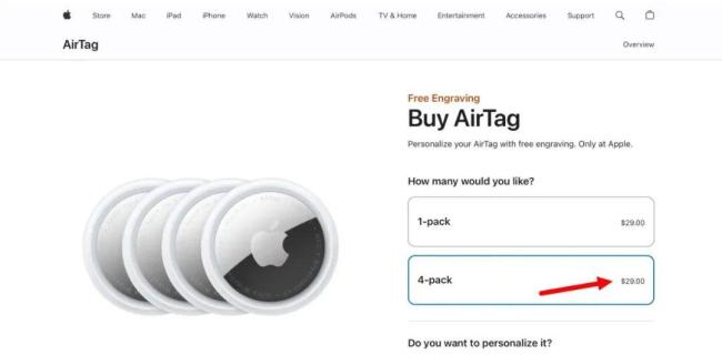 苹果官网近日在美国出现了一次罕见的价格错误,原价99美元的四件装AirTag被标为29美元,相当于买一送三。消息迅速传播后,大量消费者涌入官网抢购,导致发货时间被推迟到12月