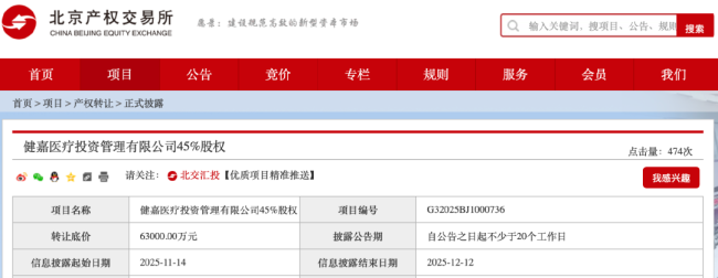 近日,国药控股在北京产权交易所公开挂牌,出售健嘉医疗投资管理有限公司45%股权,转让底价高达6.3亿元。若本次转让成功,意味着国药控股将彻底退出这家公司。