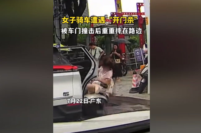 7月22日,广东。这一下撞的不轻。女子骑车遭遇开门杀,被车门撞到后重重摔在路边。...