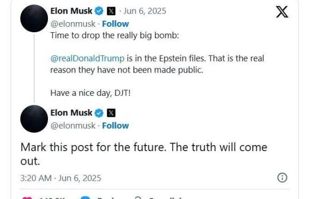 北京时间凌晨3点刚过,马斯克在社交媒体上爆料,称特朗普涉嫌爱泼斯坦性犯罪案,这就是美国政府没有公布爱泼斯坦档案的真正原因。马斯克还表示,没有他的支持,特朗普赢不了大选,众议院会被民主党控制,共和党在参议院也只会是微弱优势。马斯克在过去一年成为共和党最有影响力的金主之一,为特朗普竞选连任投入了约3亿美元。