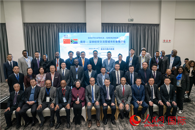 人民网约翰内斯堡6月26日电 (记者邹松)南非—深圳经贸交流与城市形象推介会25日在南非约翰内斯堡举行。中国驻约翰内斯堡总领事潘庆江,深圳海外联谊会会长王强、南非副总统特别经济顾问甘迪加·布朗等出席。