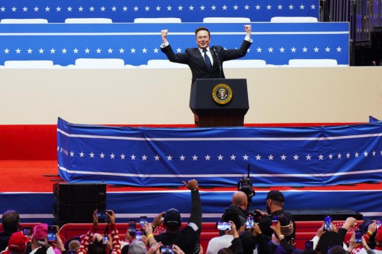 埃隆·马斯克2025年1月20日在美国首都华盛顿第一资本体育馆发表演说。新华社记者 吴晓凌 摄