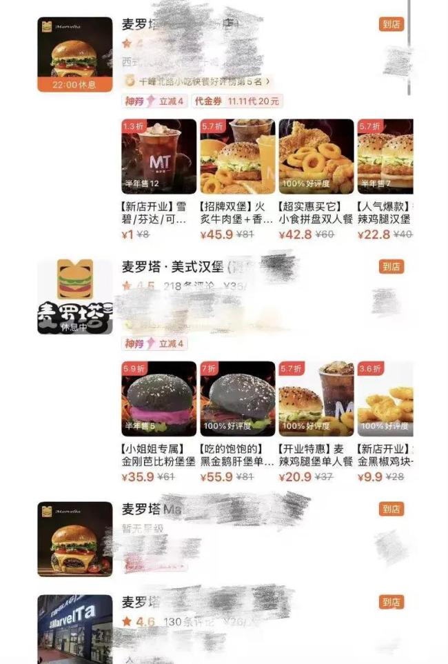 记者在平台搜索发现,仅有麦罗塔作为连锁品牌拥有实体门店,其余品牌甚至连线上门店信息都无法查询到。
