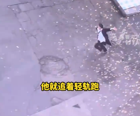 电影情节照进现实!情侣在雨中分别,男孩扔下雨伞,奔跑追逐轻轨。...