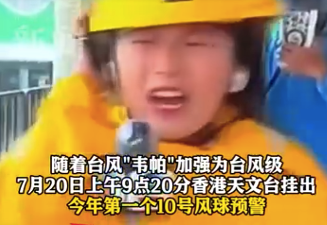 片段可见,陈尚萱穿上黄色雨衣及黄色头盔,拿着咪高峰在红磡码头海傍进行报导。现场非常大雨,陈尚萱为免头盔被吹走,用一只手按着头盔。陈尚萱一度被大风吹到站不稳,她扎好马步后继续报导现场情况。