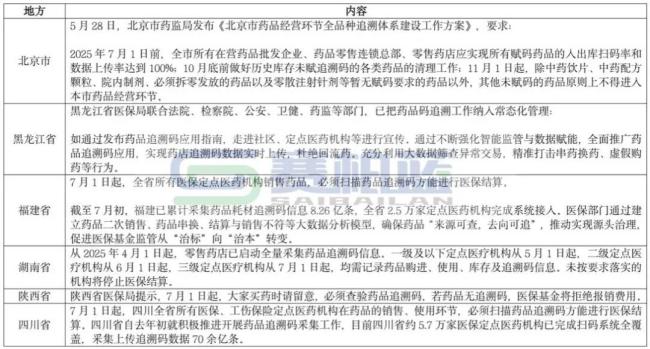据赛柏蓝不完全统计,自国家发布《关于加强药品追溯码在医疗保障和工伤保险领域采集应用的通知》后,该项工作在各地已积极有效落实: