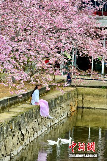 3月9日,游客在樱花园里赏花。近日,位于福建省闽侯县龙台山的樱花次第绽放,吸引许多市民和游客前来赏花游玩。中新社记者 王东明 摄