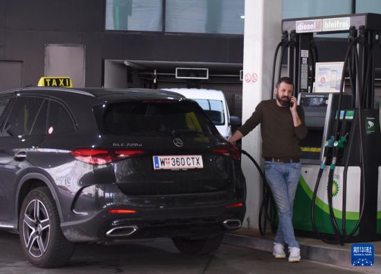 3月24日,在奥地利首都维也纳一处加油站,一名车主在加油。新华社记者 贺灿铃 摄