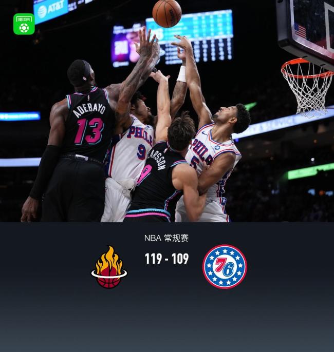 北京时间3月31日NBA常规赛,迈阿密热火对阵费城76人。比赛结束时,热火以119-109战胜76人