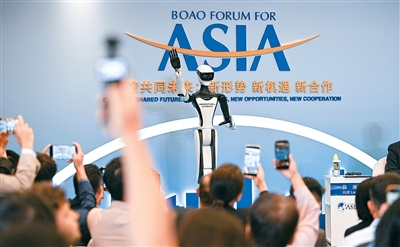 博鳌亚洲论坛二〇二六年年会期间,多元智能设备全方位护航盛会运行,以科技力量赋能智慧办会。图为在年会分论坛上参与互动的人形机器人。  新华社记者蒲晓旭摄  日前,博鳌亚洲论坛2026年年会·华商领袖